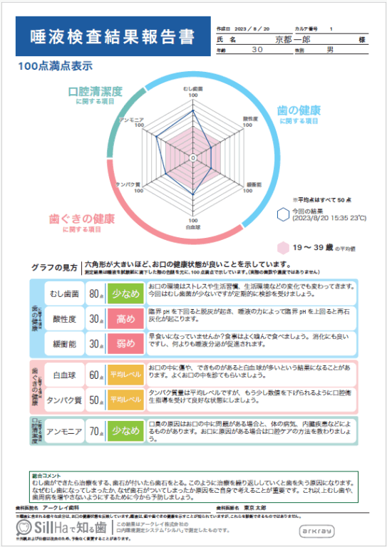 SillHaで検査をした6項目の検査結果を点数で結果表示することが可能です。