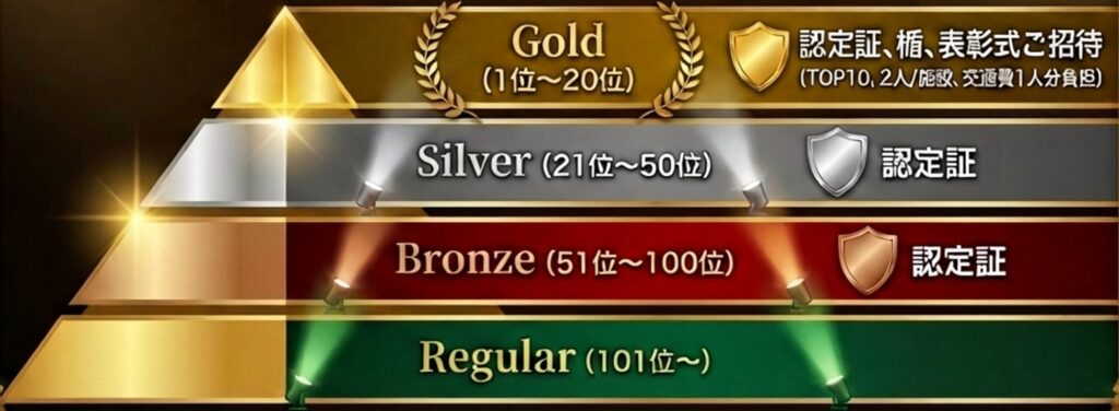 | Bronze | 51位~100位 | ・認定証 | ・オリジナルバッジ |